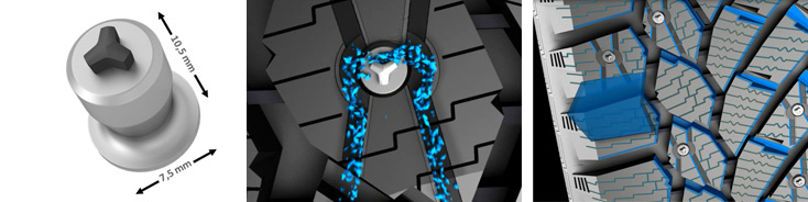 Инновационная система фиксации шипа, позволяет отводить ледяную крошку, гарантируя тем самым надежный контакт во время торможения.