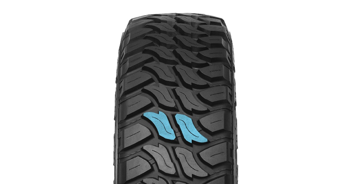 Протектор с массивными блоками волнообразной формы и острыми гранями в центральной части и удлиненными блоками с диагональной направленностью в плечевой зоне позволяют демонстрировать стабильно высокие показатели проходимости в условиях бездорожья. Развитая сеть зацепов эффективно показывает себя при движении по вязким грунтам, глине, песке, дороге с колеей и другими покрытиями.