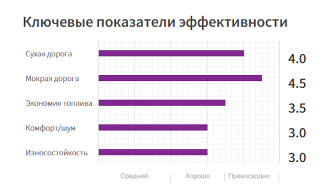 - Хорошие показатели управляемости на мокрой поверхности.